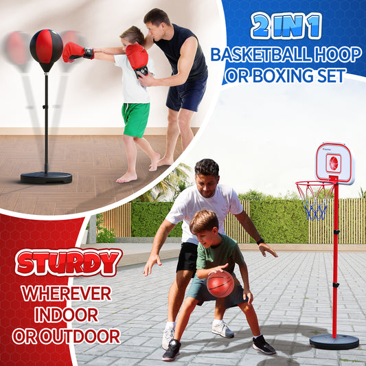 2 in 1 Kids Basketball Hoop and Punching Bag, Toddler Basketball Hoop Indoor Outdoor with Boxing Gloves, Sports Toys Christmas Gifts for Boys Ages 5-10