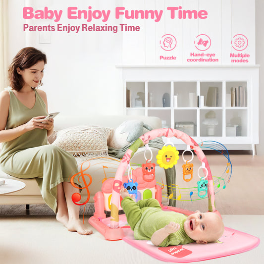 Baby Play Mat for 0-6+ Months, Baby Play Gym Tummy Time, Activity Mat Musical Foot Piano for Learning Sensory Toys, Christmas Birthday Newborn Gifts for Boys Girls