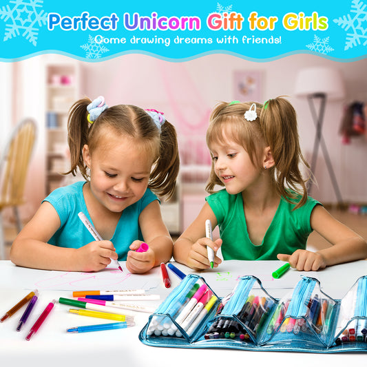 45 Pcs Fruit Scented Markers Set for Kids, Unicorn Pencil Case, Art & Coloring School Supplies Kit with Unicorn Stickers&Washbale Pens, Christmas Birthday Gifts for Girls & Boys 3+