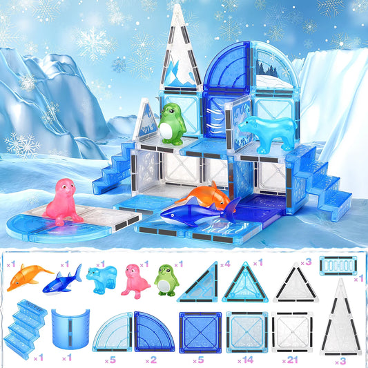 76 PCS Frozen Animals Magnetic Tiles for kids, 3D Building Blocks w/ 5 Animals Magnetic Toys for Toddlers, STEM Learning Toys Birthday Christmas Creative Gifts for Boys Girls 3 4 5 6+