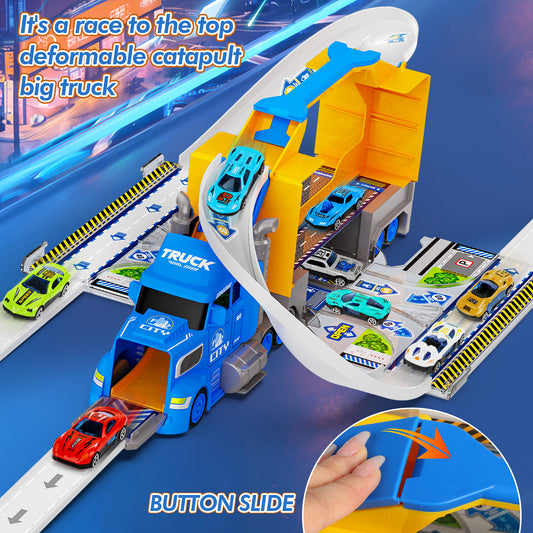 Carrier Truck Race Track Toys for Kids, 2 in1 Transport Trucks Set W/Car Track & 8 Race Cars, Truck Toys for 3-8 Years Old Boys Kids Toddler Car Set Gifts for Boys and Girls(Blue)