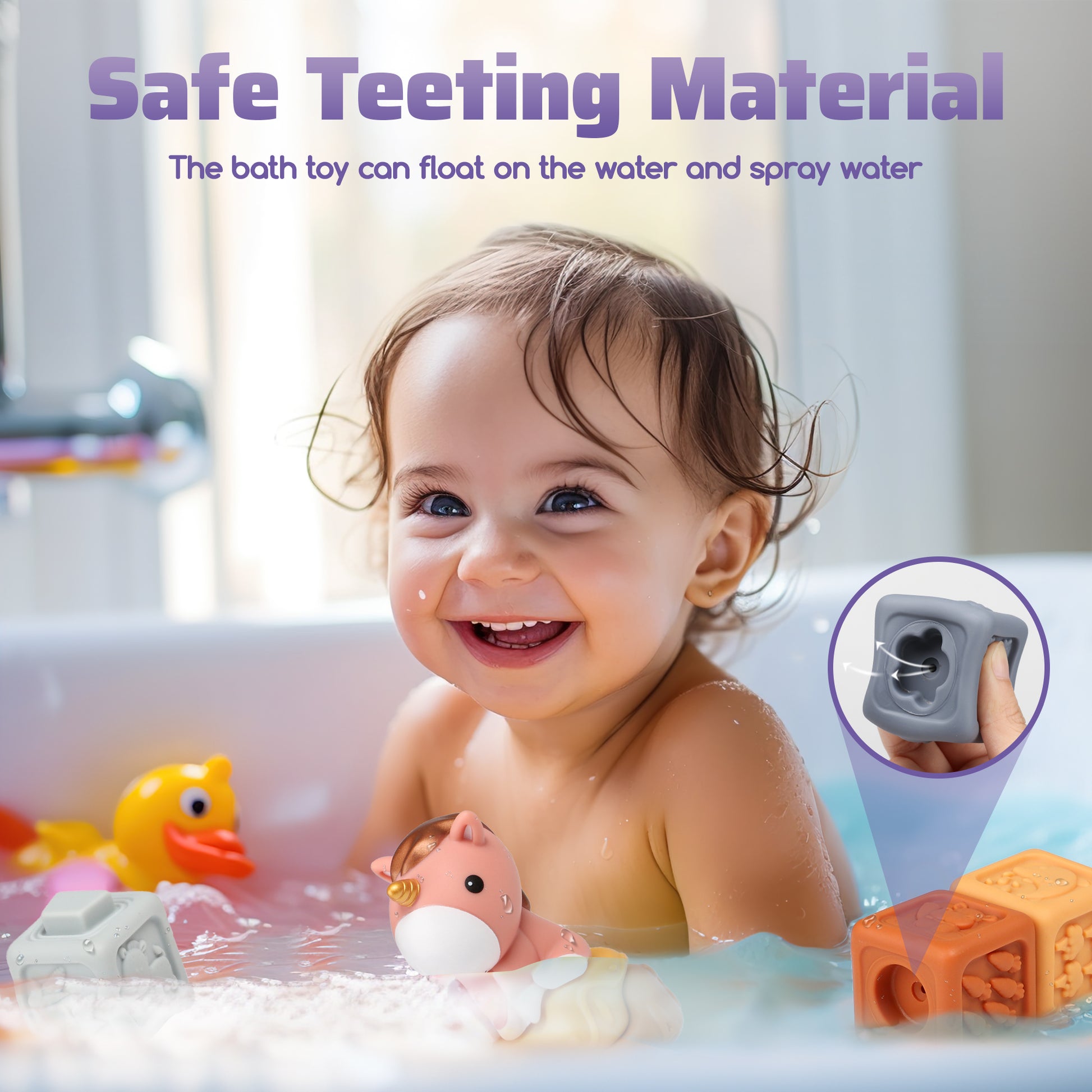 13PCS Soft Blocks for Babies 6 12 18 Months, Unicorn Baby Bath Toys, Montessori Teething Toys, First Birthday Gifts for Baby Girls Boys.