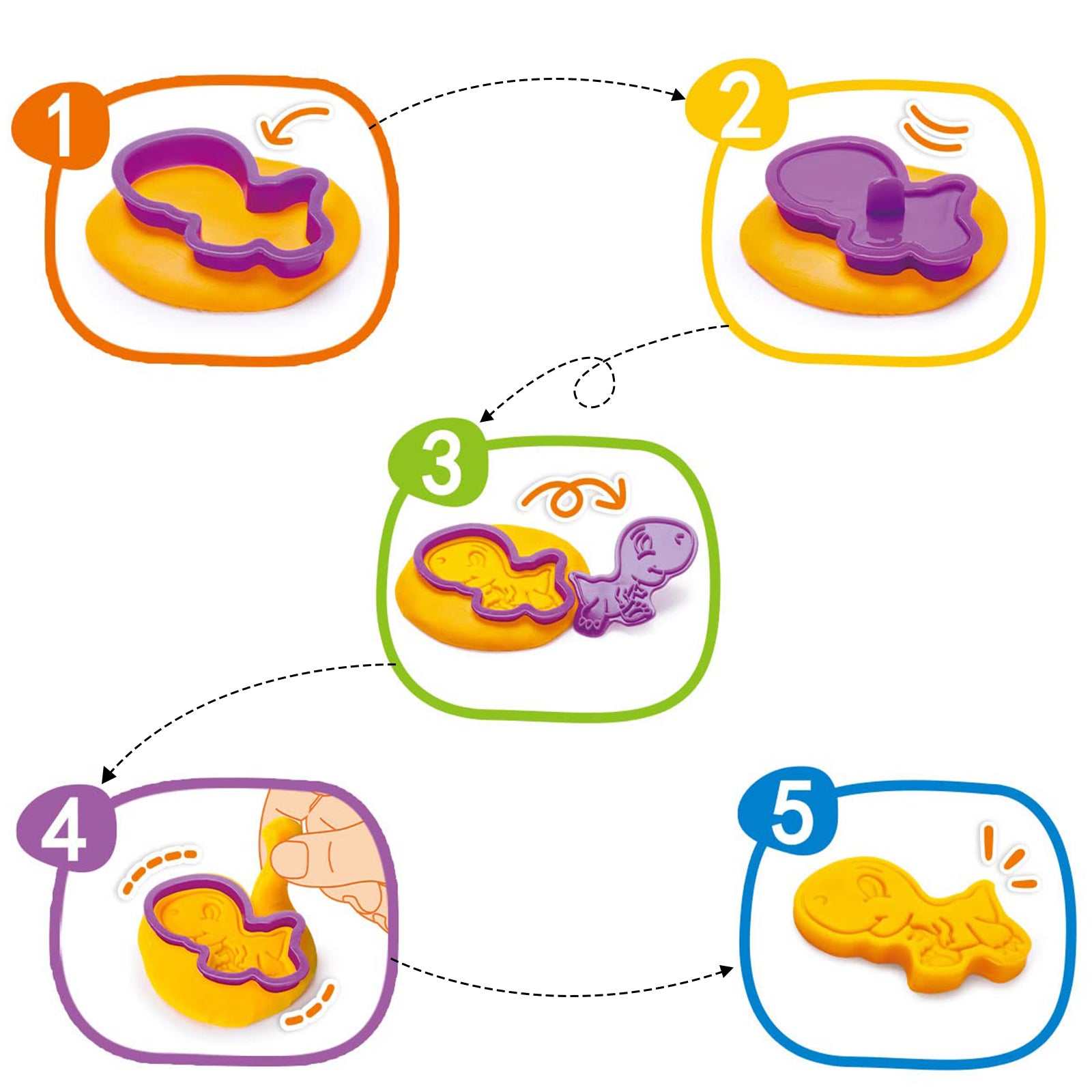 - Thoughtful and Careful Design The mold and cutting tools are made to fit the child's small hands, with no sharp edges or burrs, so the child can easily pull, cut and press to make the dinosaur.
