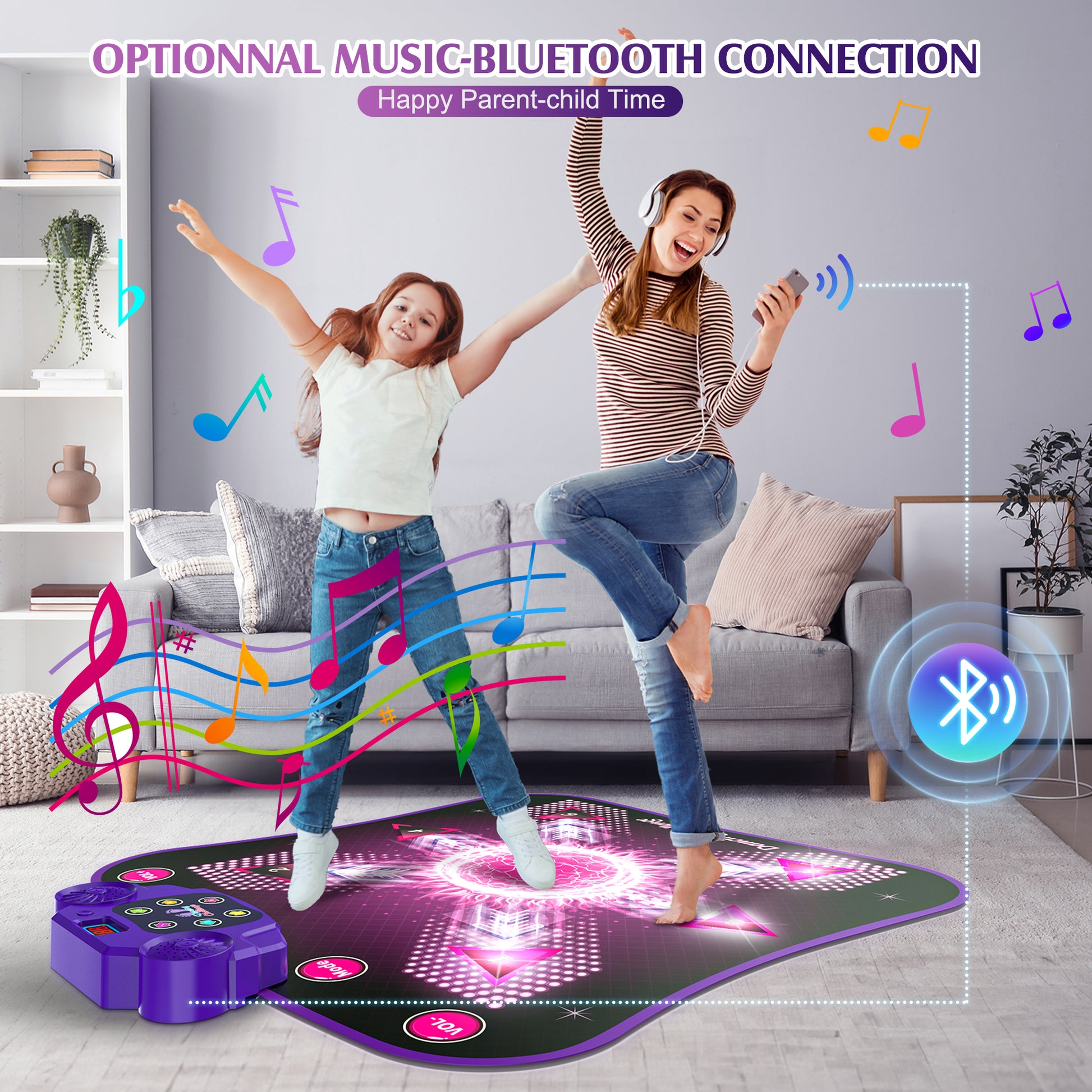 - đăNew BLUETOOTH Function - Connect to Play Gamesă:Â Compared with ordinary dance mat on the market, our luminous electronic dance mats come with BLUETOOTH function. Connect to your favorite songs via BLUETOOTH and dance to the beat on soft dance surface. With the variety of music options available, your child will never get bored of dancing.The kids dance mat provide a fun experience to keep your child active and happy. Best Toys for 3 4 5 6 7 8 9 10 11 12+ Year Old Girls Birthday Gifts.
