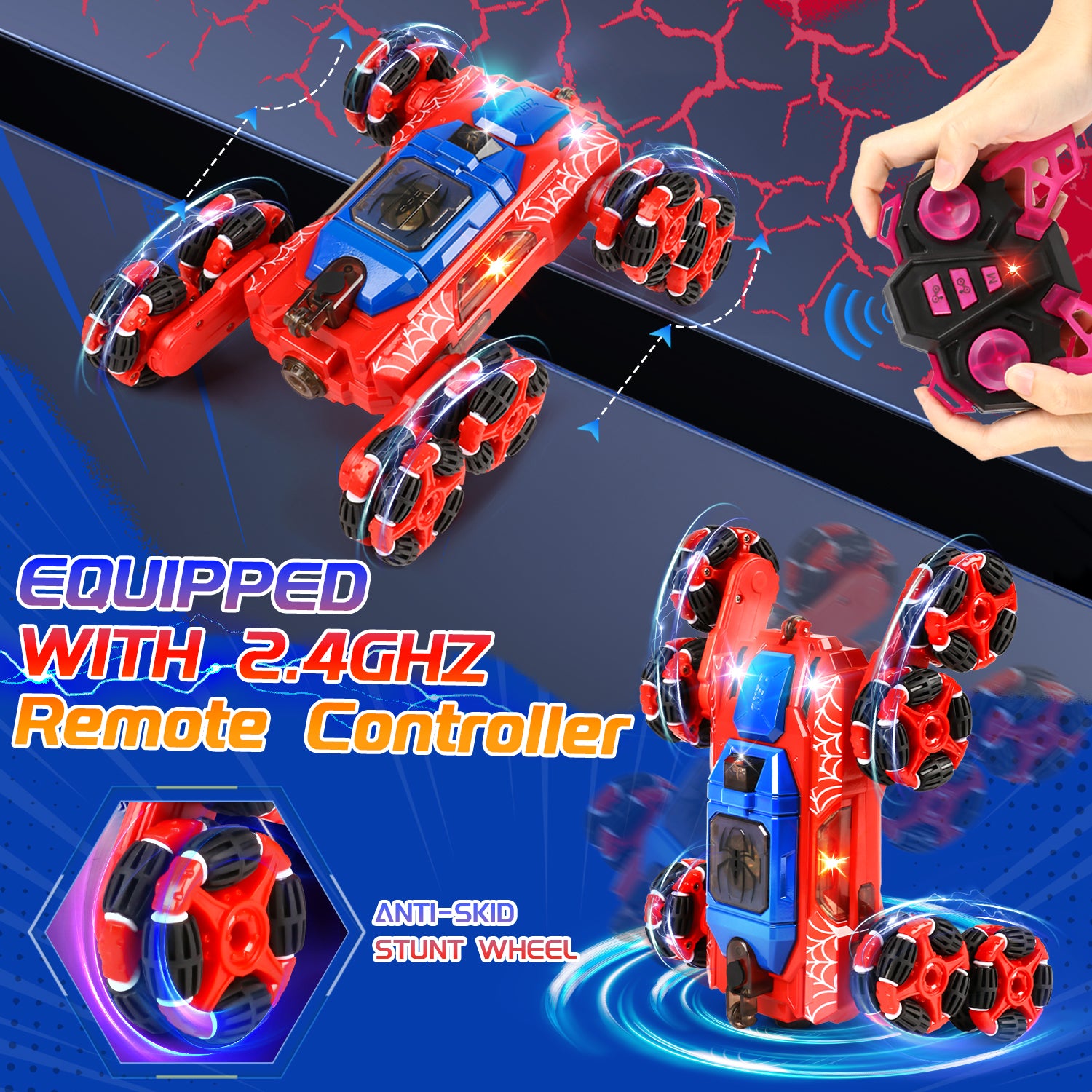 Huge Wave Remote Stunt Control Cars, 8WD RC Off-Road Car, Transformation Double-side Driving, with Gesture Control, Lights & Music and Spray, Gift for Kids Age 8-12