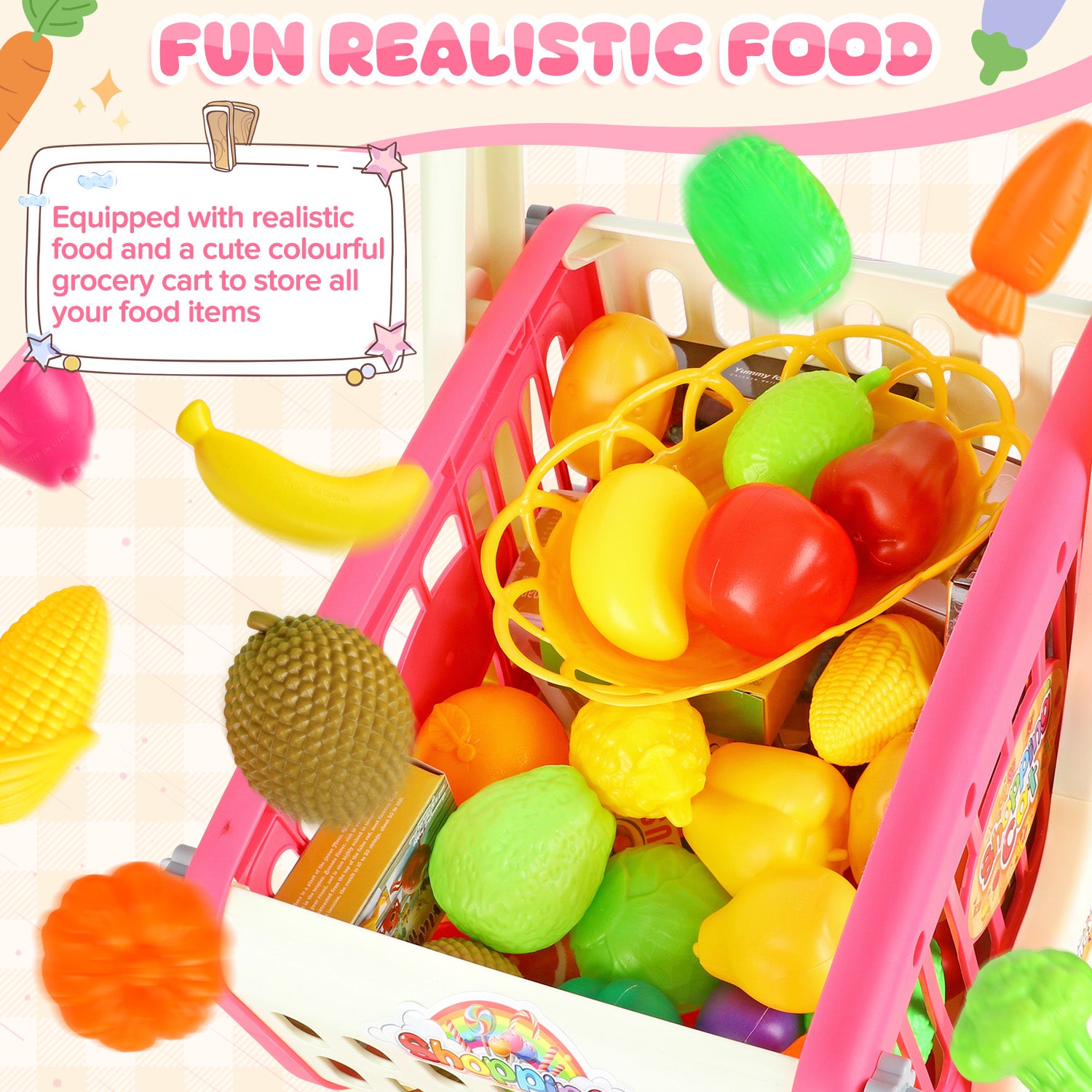 Kids can role play shopping game, fill the toddler grocery cart and push it around. It is great for creative and imaginative playing, then improves kid's motor skill development, imagination, hand-eye coordination and counting ability, and helps them to learn and recognize variety of food. - 💝【Perfect Gift】: