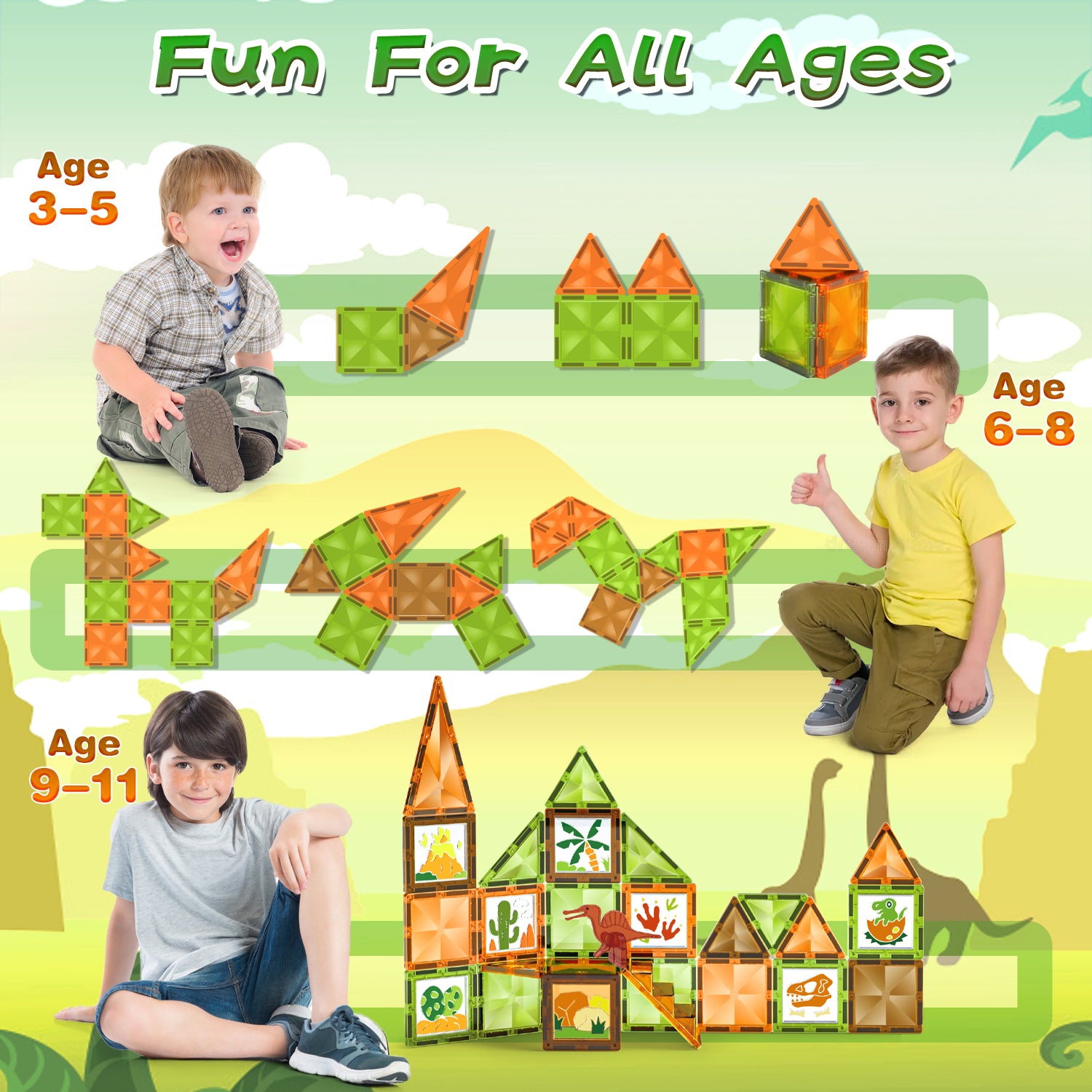 🦕【Unique Dinosaur Theme Design】🦕- Ignite your child's imagination with themed dinosaur magnetic block set. The large magnetic tiles set features custom patterns and vibrant colors that bring the jungle to life. Let your child create their own dinosaur habitat in the jungle, combining building and storytelling for endless fun.