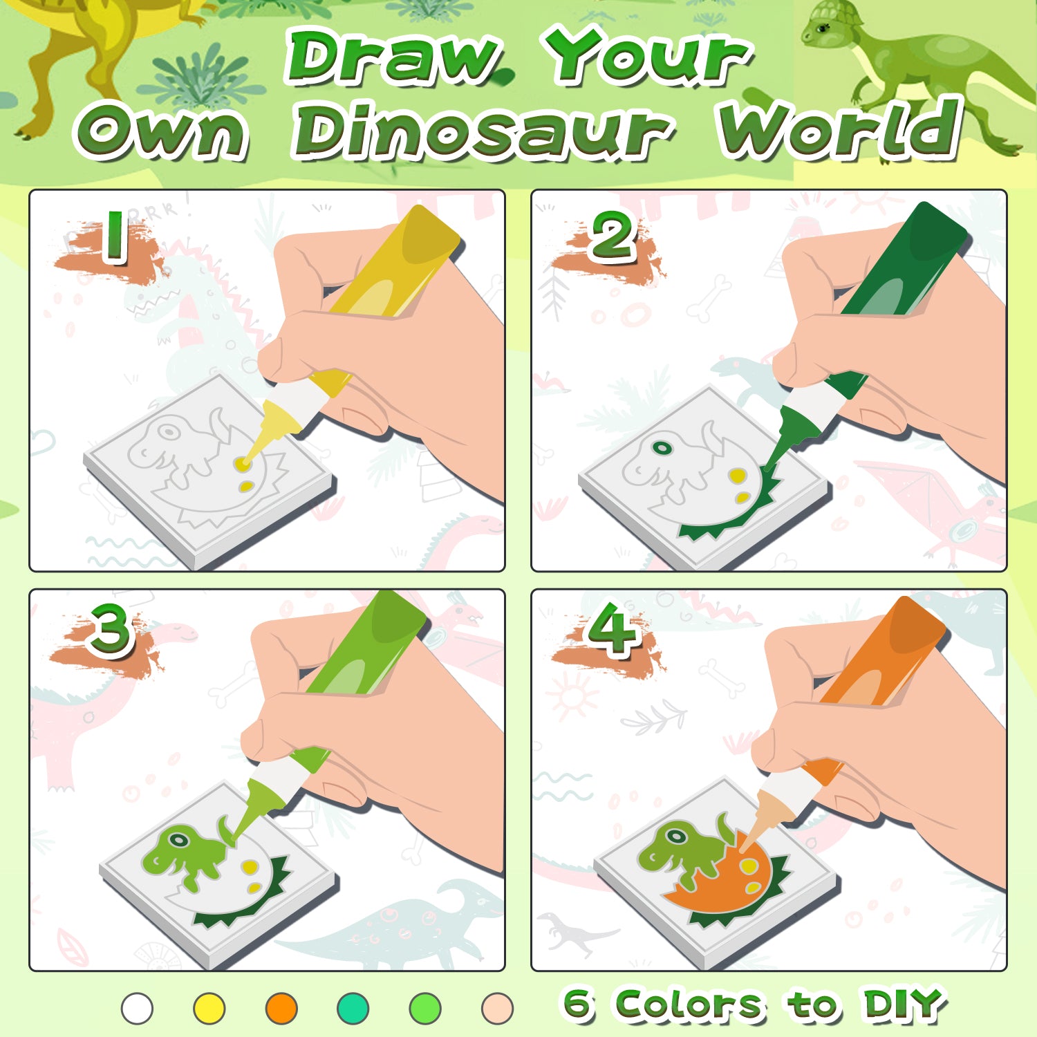 🎨【Build Children dinosaur world】🎨- The dinosaur magnetic building titles set includes 6 paintbrushes, You can draw the shape you want on the magnetic tile, Inspire children's imagination, DIY your own dinosaur world. There are also different colors and shapes, allowing children to fully unleash their imagination and creativity!