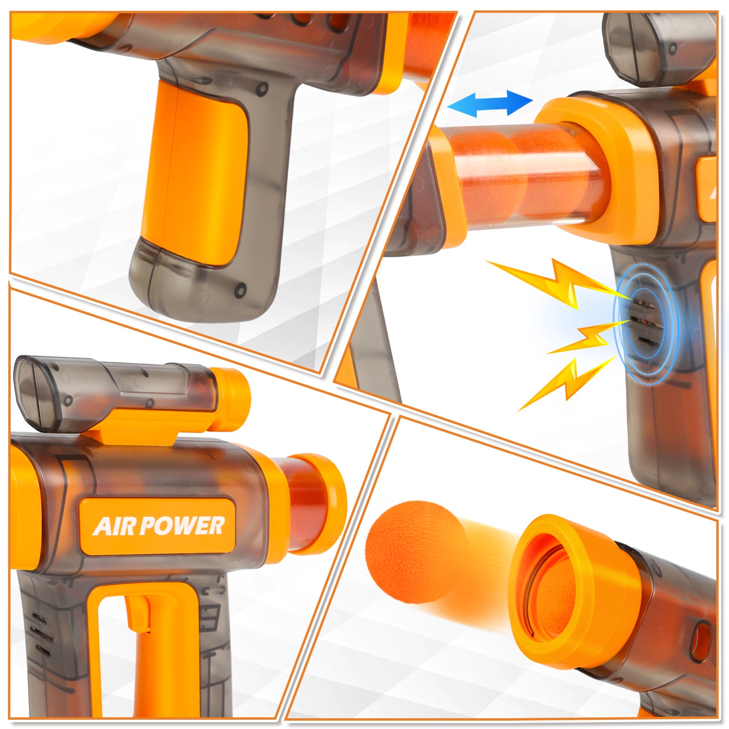 - Safe & fun for children - Pump-action guns that do not require batteries are more suitable for young children to operate. But we still design the sound&light to make the air popper more vivid. These lightweight sponge balls will not harm their targets - household items and people, even children can play fights with foam balls with friends. Compared to other products, our unique sniper rifle structure will prove durable, ensuring the gun can withstand air impact without falling apart.