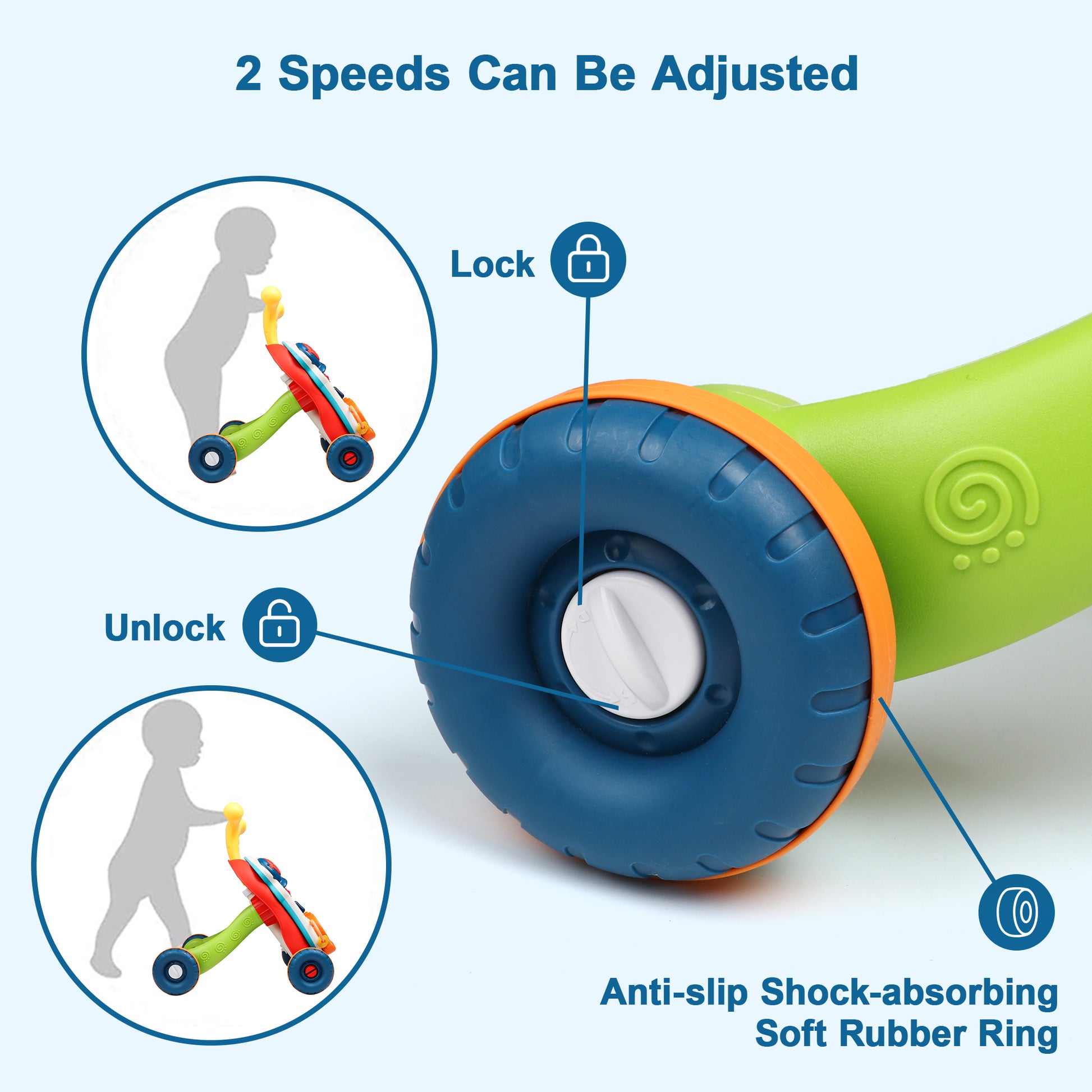 - Adjustable Speed and Prevent O Legs: With anti-slip rings on the wheels and an adjustable speed control, this walker is perfect for your baby's walking needs at different stages. The design helps prevent bow legs and improves coordination.