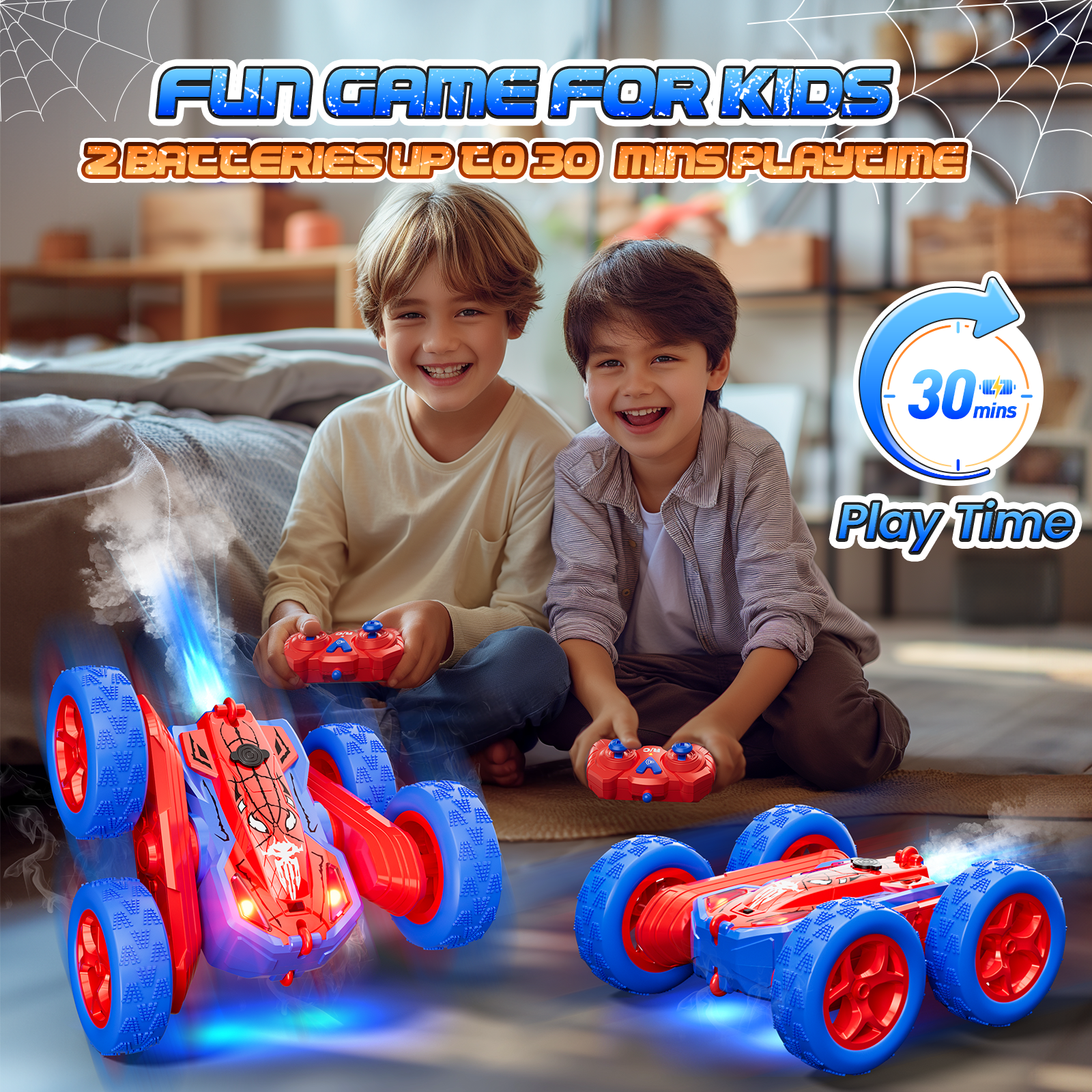 - Surprise Gift for Children's Hobby: This excellent remote control car is the ideal toy for boys and girls who are obsessed with stunt cars. With exquisite box packaging and complete accessories, this spider toy car is perfect for children on birthdays, Easter, Christmas, or other occasions. If you have any questions, please contact us, and we will provide you with a satisfactory solution!